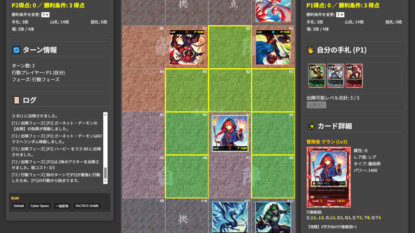 未分類ゲームの概要(Introduction) 【ブラウザで遊べるPvEトレーディングカードゲーム(プロトタイプ)】 ずっと作りたかった「自分だけのカードゲーム」を、生成AI(Gemini/ChatGPT)の力を借りて形にしま...